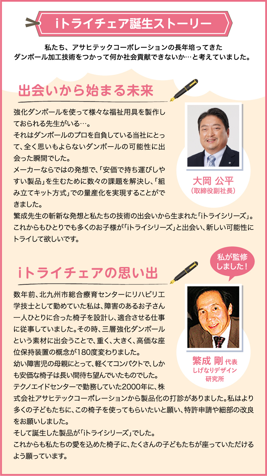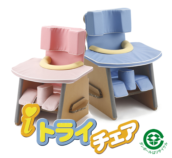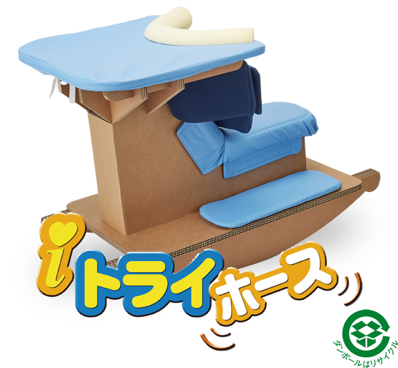 障害を持つ乳幼児が、自力で座れるiトライチェアには、三層強化ダンボールを使用し、お子様や介護者にもやさしい、工夫がいっぱい。